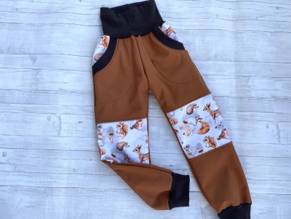 Softshell kalhoty podzim Lesní zvířátka skořicová