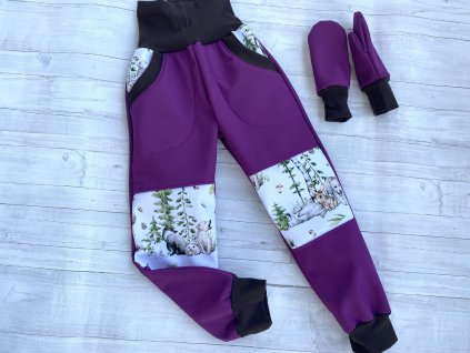 Softshell kalhoty podzim Roztomilá lesní zvířátka fialová