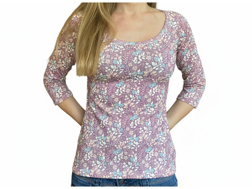 Dámské triko s 3/4 rukávem a lodičkovým výstřihem je ušité z kvalitního a na omak příjemného jemného úpletu, který má polopřiléhavý střih.