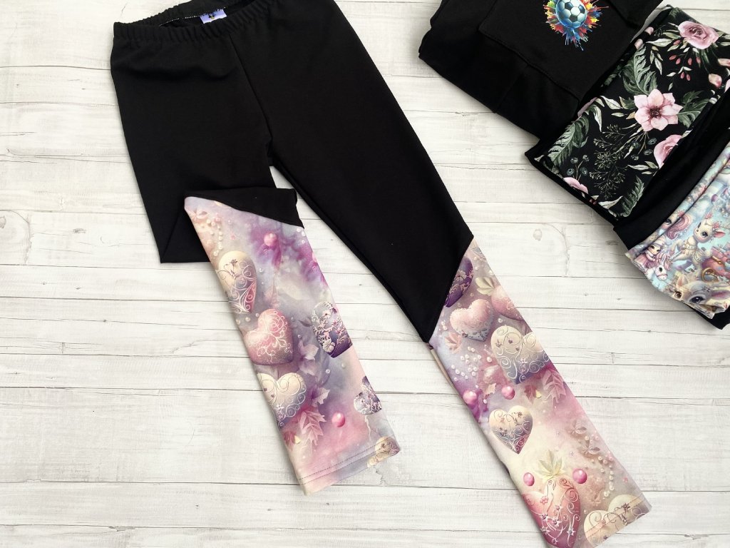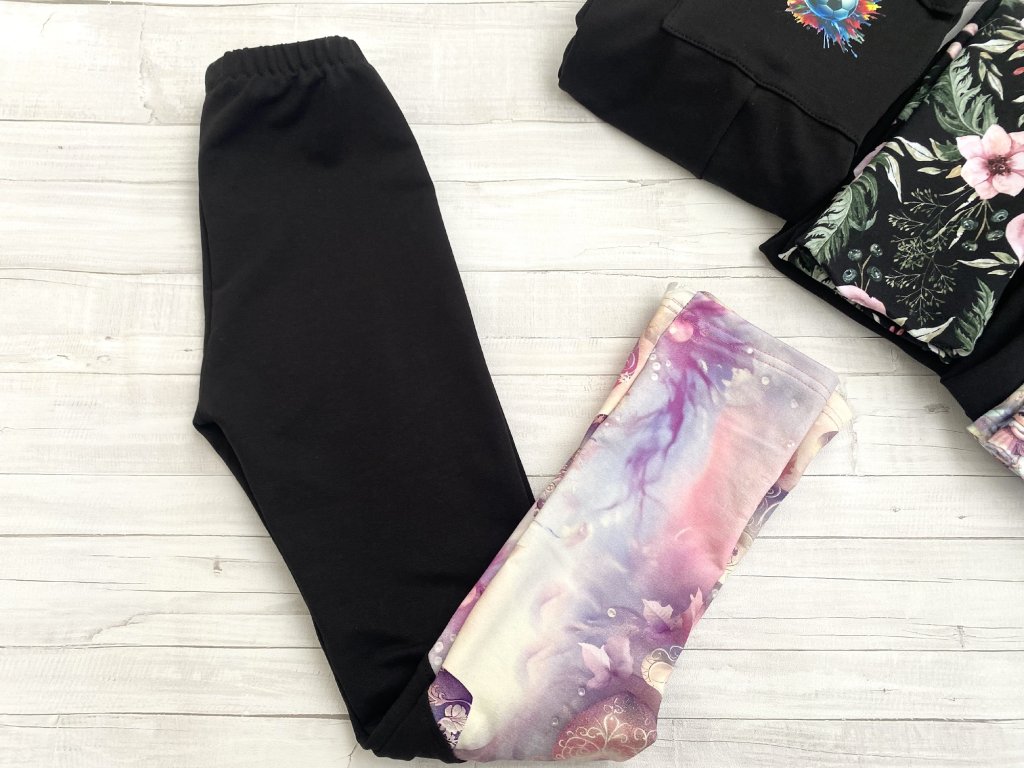 Legíny dětské ušité z jemné elastické teplákoviny.