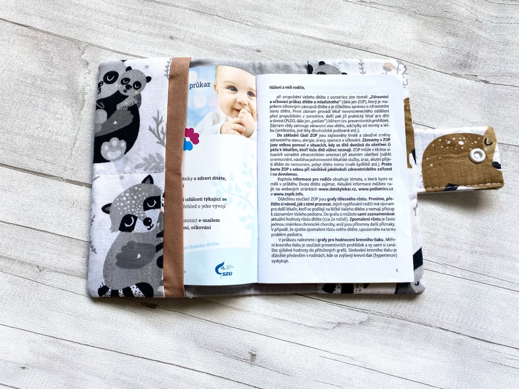 Bavlněný vyztužený obal s motivem.Vyhovuje standartní velikosti očkovacího průkazu.