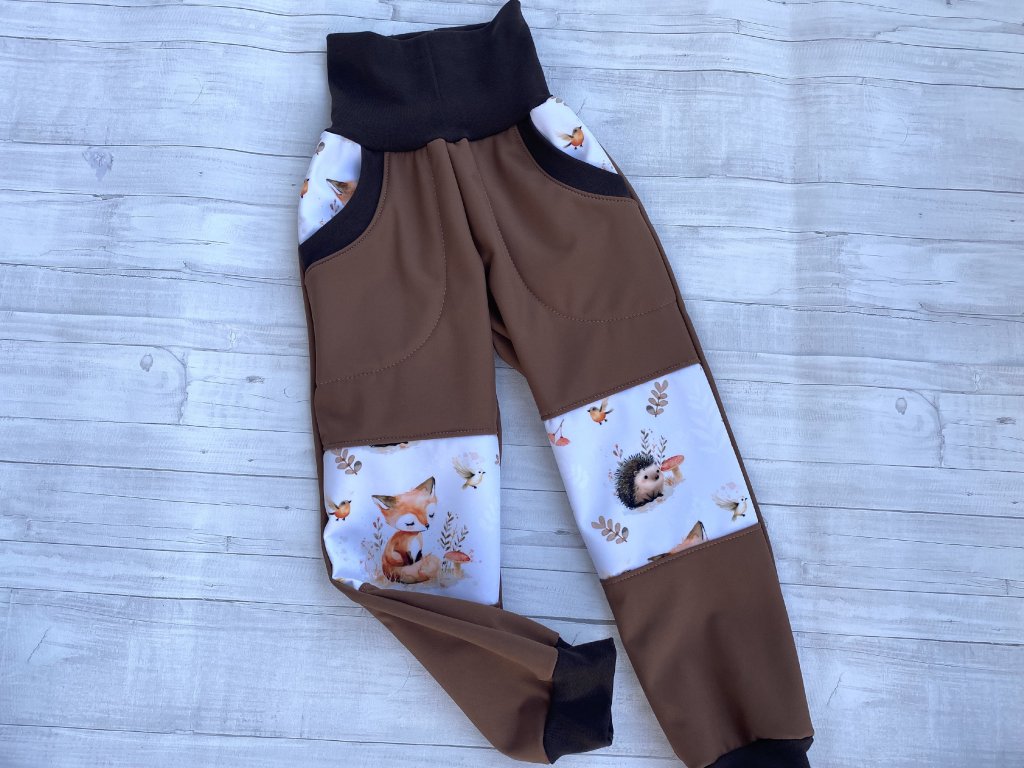 Softshell kalhoty podzim Lišáček a lesní zvířátka