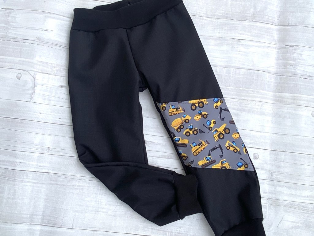 Softshell kalhoty Stavební stroje černá jarní vel. 92/98
