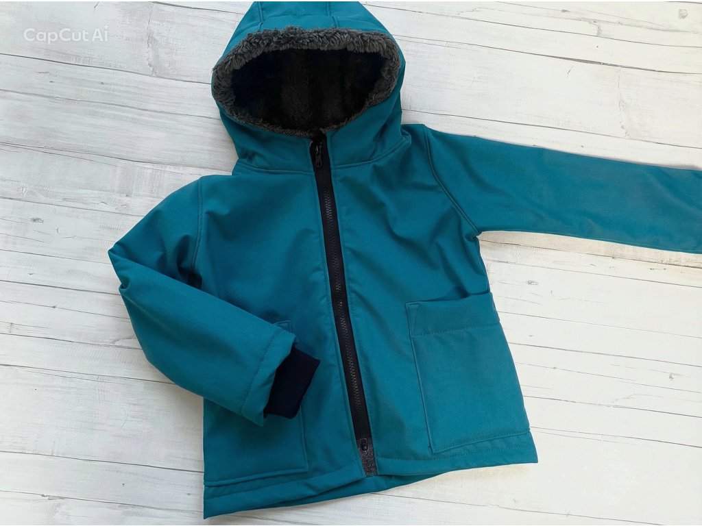 Softshellová bunda zimní s beránkem petrolejová
