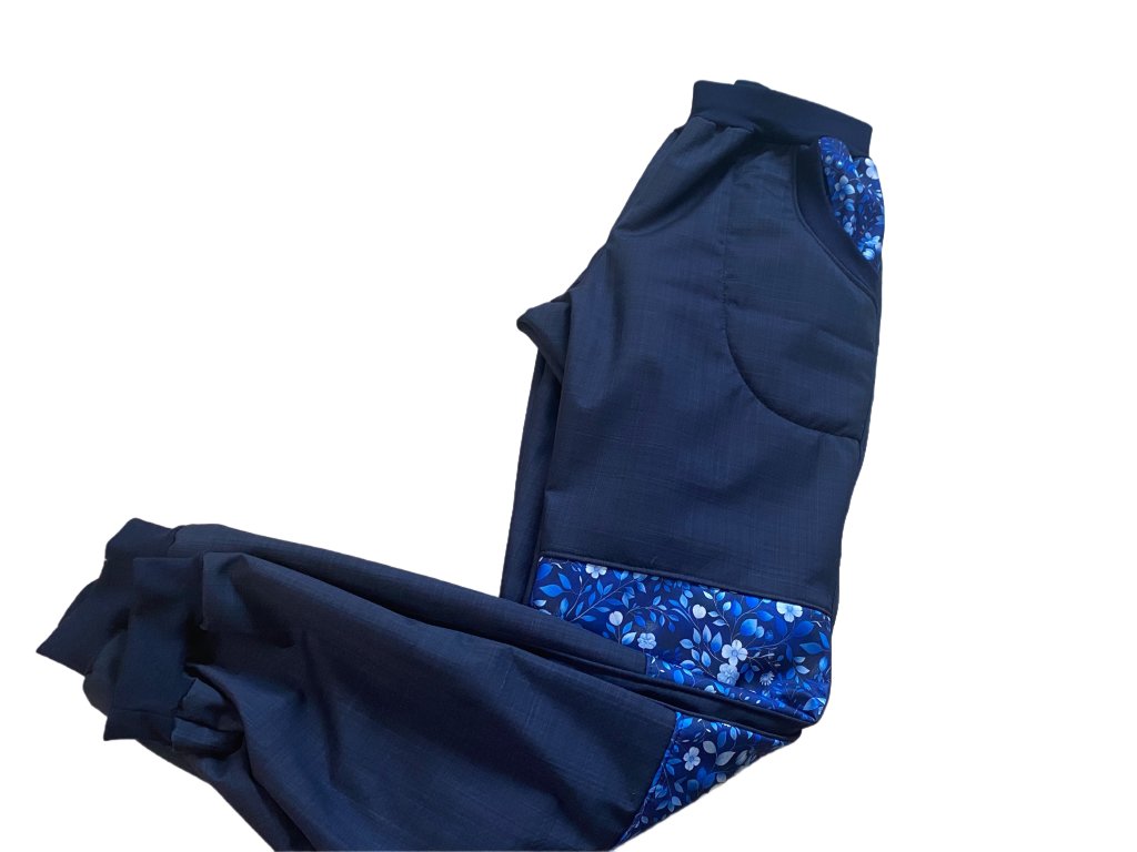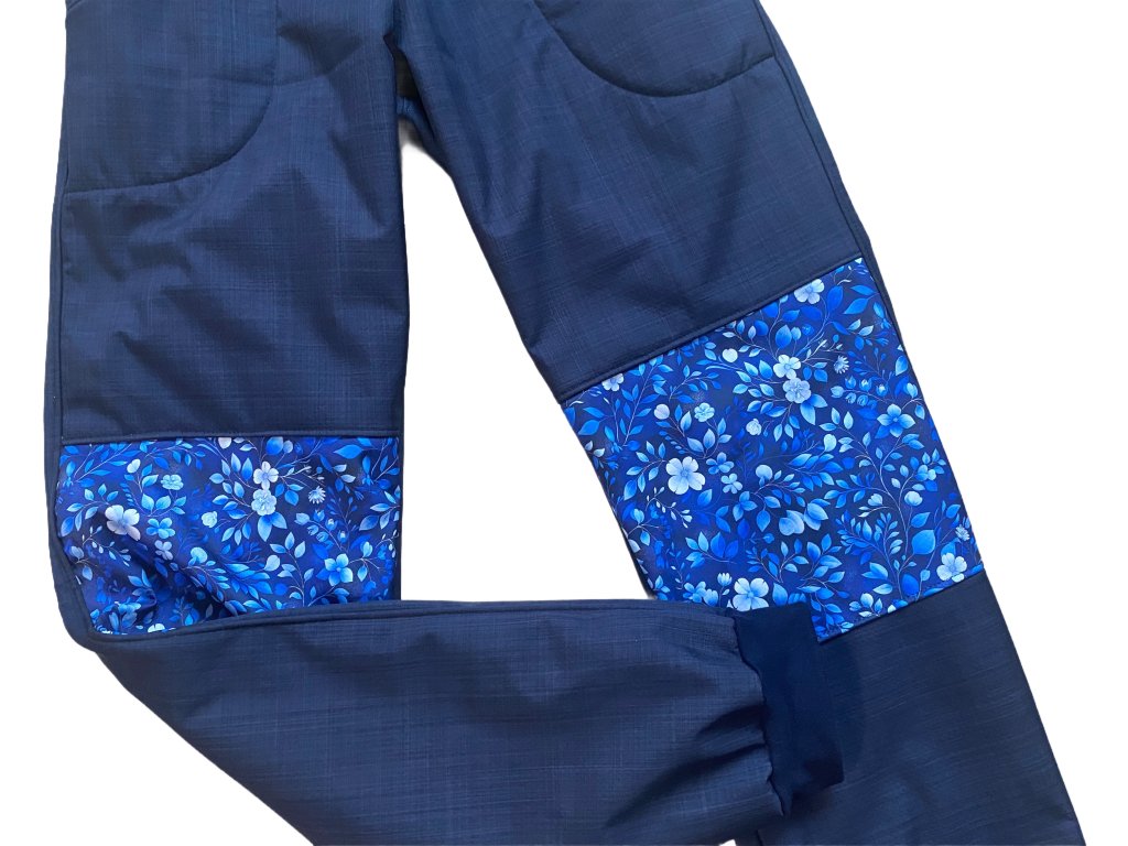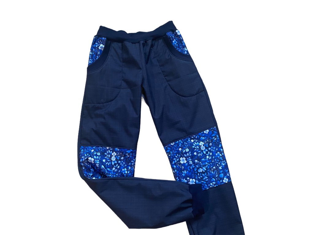 Softshellové kalhoty DÁMSKÉ s beránkem Kvítky/tm. modrá vel. S