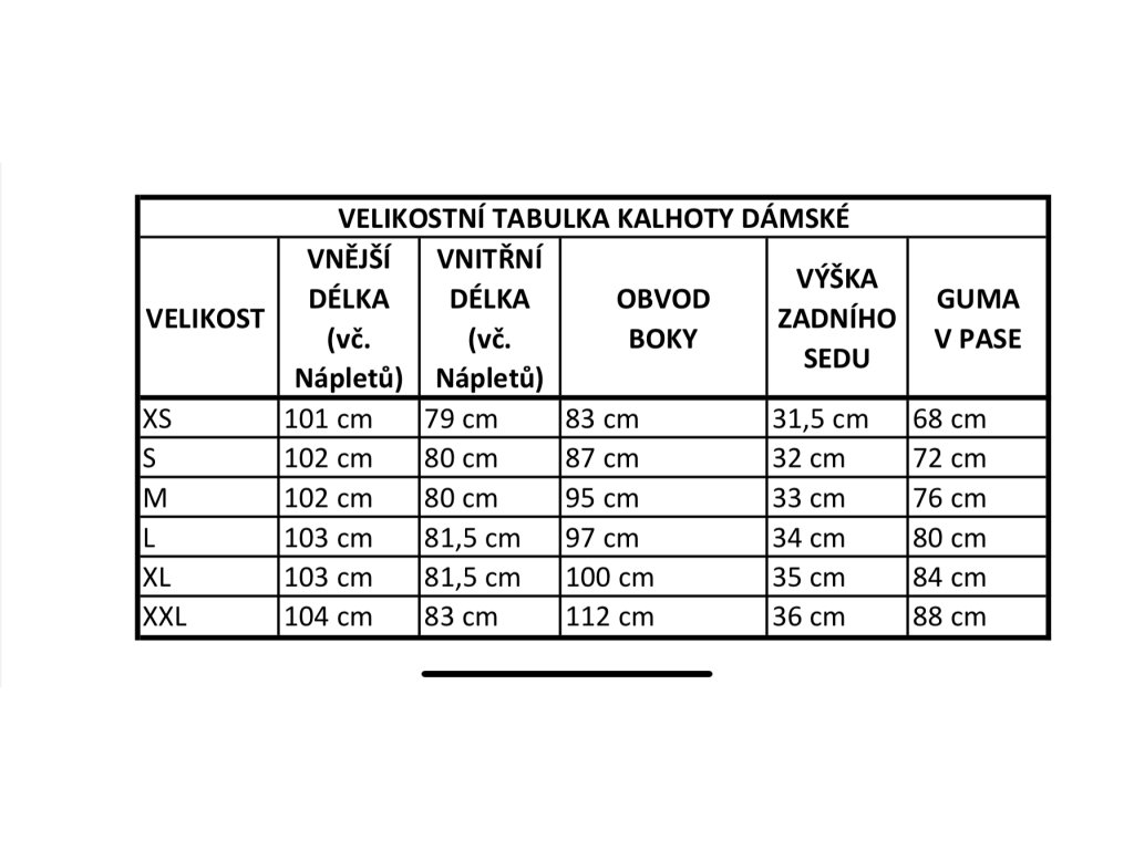 Při výběru kalhot prosím měřte. Pokud nezapadáte svými rozměry do tabulky, nevadí, napište mi prosím zprávu a domluvíme se na kalhotách, které sednou na Vaši míru.