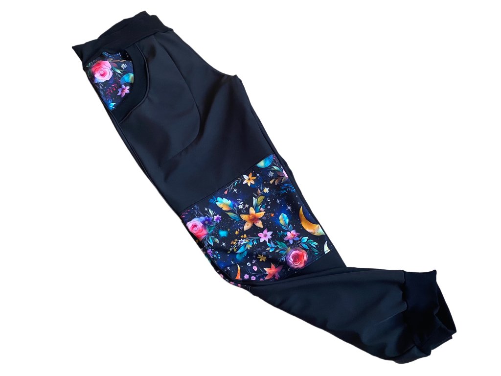 Softshellové kalhoty DÁMSKÉ s fleecem Noční zahrada/černá VEL. M